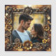 O imã de fotos do Steampunk. Artes de metal de ouro, flores e um fundo de ouro. Carregue a sua imagem favorita na área de personalização.