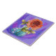 Um azulejo floral brilhante de flores pintadas; cor-de-rosa cheio floresce em um vaso de água, em uma palha traseira de roxo. Acessório perfeito para adicionar uma abertura de cor à sua cozinha (ou a qualquer outra sala da casa!) Use como uma trivit ou uma peça de arte.