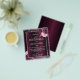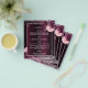 Por favor, note que este menu está no papel folheto e muito fino. Para o menu mais grosso (mesmo design) visite nossa loja. Um elegante e glamouroso menu de casamento. Um fundo de gradiente arrojado profundo, decorado com falso brilho prateado, faíscas e flores rosa e burguesas. Texto branco. Personalize e adicione o menu. Você pode adicionar mais texto, fotos no verso.