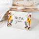 Este design apresenta uma disposição de flores silvestres coloridas realistas e prensadas à mão, juntamente com uma combinação encantadora de fontes modernas e elegantes. Agradeça aos convidados do seu chá de noiva com estes cartões de agradecimento correspondentes. Adicione sua mensagem personalizada de agradecimento. Veja toda a coleção para mais itens correspondentes!