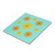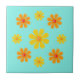 Flores amarelas e laranja cortadas à mão sobre o belo fundo azul claro sobre o Azulejo de Foto Cerâmica para cozinha e decoração doméstica. *Todas as coisas que você vê nos produtos são feitas à mão, mas você deve saber que você consegue uma foto!