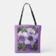 Saco floral divertido com o aplauso do florescimento de primavera. Esta design tem fundo roxo, e uma fotografia de picos roxos e brancos em flor, representada em ambos os lados. Bolas adoráveis para garotas que amam roxo e flores! Fotografia floral com uma design feminina bonito.