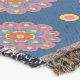 Um cobertor bonito, com um padrão colorido de Rangolis, Flores Rosa e Bolinhas em um fundo azul profundo que você pode mudar se quiser. (Teal ou Raspberry Pink são alternativos excelentes!) Parte da coleção Posh & Painterly 'Rangoli'.