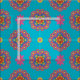 Padrão Floral de Rangoli com Tecido Bolinhas com repetições ininterruptas num Fundo Turquesa que você pode mudar se quiser. Da coleção Posh & Painterly 'Rangoli', o motivo original é de uma colagem de papel pintada à mão por Judy Adamson.