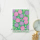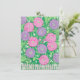 Flores cor-de-rosa púrpura e roxas cercadas por folhas verdes são impressas em cartões de saudação personalizados. O texto, Obrigado, é impresso em letras cor-de-rosa, esboçadas em branco, e pode ser personalizado na forma modelo com sua própria saudação. Folhas verdes estão no fundo, e uma cerca de piquete está no fundo. Obrigado por comprar em CherylsArt no Zazzle.