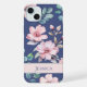 Mala floral branca com flores cor-de-rosa e folhas verdes sobre fundo de rosa claro mole. Este caso feminino e na moda é perfeito para mulheres e meninas e faz um presente excelente para ocasiões especiais como Natal, Dia de as mães, Dia da Avó ou aniversários. Quer você esteja procurando uma capa de telefone elegante para uso cotidiano ou um presente pensativo, este design floral irá adicionar um toque de beleza e sofisticação a qualquer dispositivo.