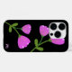 Flores rosa na Capa de telefone preta