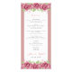 Flores rosa rosa-rosa poeirento Cartão de noiva BUDGET. Este cartão de cardápio de casamento amigável apresenta uma bela design rosa rosa pida, perfeita para um casamento romântico. O cartão apresenta rosas de aquarela delicadas, organizadas em buquês com folhas verdes esbranquiçadas na parte superior e inferior para enquadrar o texto do menu. O texto em si é exibido dentro de um quadro branco limpo, realçado com uma borda rosa empoeirada. A parte de trás do cardápio continua o tema floral, com belas terras florais e as iniciais do casal acrescentando um toque pessoal.