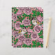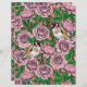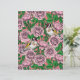 Padrão vetorial desenhado à mão com rosa e pássaros dourados. Todos os elementos do padrão são desenhados primeiro com tinta no papel e depois redesenhados e coloridos no Illustrator.