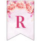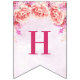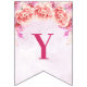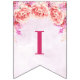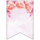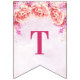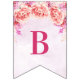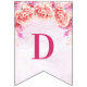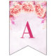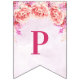 A bandeira do feliz aniversario com a aguarela cor-de-rosa bonito floresce com uma luz - fundo roxo da lavanda e texto cor-de-rosa.
