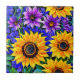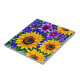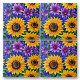 Flores botânicas bonito, amarelas e roxas e girassóis, com azulejos de folhagem verdes.