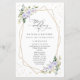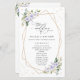 Adicione um toque pessoal à sua celebração de casamento com estes itens de na moda e festa memoráveis! Design apresenta flores roxas e brancas de aquarela, verde, confete dourado e moldura dourada sobre fundo branco.