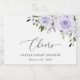 Adicione um toque pessoal à celebração do seu chá de fraldas com estes itens de na moda e festa memoráveis! Design apresenta flores de aquarela roxas e verde sobre fundo branco.