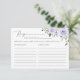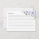 Adicione um toque pessoal à celebração do seu chá de noiva com esses cartões de receita elegantes e memoráveis! O design apresenta flores roxas em aquarela e folhagens em fundo branco.