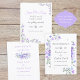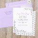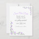 Flores de lavanda e vinhas frondosas enquadram lindamente este anúncio de casamento "Salve Nossa Data". Rosas roxas claras são perfeitas para um casamento de verão ou primavera. Modifique facilmente este cartão de salvar data roxo para uma variedade de ocasiões. A escrita elegante é fácil de modificar. Versátil para cores de casamento roxo, lilás ou lavanda.