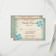 Madeira russa Aqua Praia Tropical Flores de Madeira Nascendo Cartões RSVP com um fundo de madeira de celeiro desbotado e afundado com flores tropicais divertidas em uma cor azul-turquesa-azul-azul-turquesa. Estas são excelentes para um casamento russo na praia ou para um casamento no campo. Itens correspondentes: