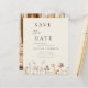 Este convite elegante e boêmio para salvar a data, com design minimalista de flores silvestres, é a maneira perfeita de anunciar seus próximos núpcias de forma elegante e acessível. O convite apresenta um design simples com uma flor silvestre e uma fonte moderna. O convite é personalizável com seu próprio texto e detalhes, tornando-o a maneira perfeita de personalizar sua data de salvamento.