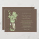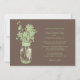 Perfeito para um casamento no estilo country ou talvez você apenas ame Mason Jars! Vintage Mason Jar pendurado num gancho com flores selvagens do campo. Um fundo KRAFT BROWN com desenho verde-claro (sábio) de um Mason Jar cheio de flores silvestres. Se você tiver alguma dúvida sobre este design ou quiser uma mudança de cor, envie um e-mail para mim paula@labellarue.com Além disso, verifique se os Cartões SENTADOS RSVP, RECEPÇÃO e CONVIDADO correspondem!