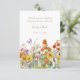 Cartões de Agradecimento Casamento no Campo Flores Silvestres Coloridas apresenta lindas flores campestres em laranja, amarelo, roxo e rosa em um fundo branco com suas informações de agradecimento. Personalize editando o texto nas caixas de texto fornecidas. Criado para você por ©Evco Studio www.zazzle.com/store/evcostudio