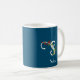Flores silvestres de aquarela, caneca de café azul inicial. Monograma em dois lados. Perfeito para presente.