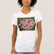 Esta bela camisa de senhoras mostra uma fotografia detalhada de um grupo de flores bonito rosa-silvestres em forma de estrela, cada uma tem um delicado centro branco. A foto foi tirada usando macro fotografia para um resultado detalhado.