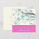 Flores de magnólia turquesa, convite de casamento rosa choque Save the Date, com uma bela ramagem de magnólia com flores turquesa, botões e uma faixa rosa choque. Paleta de cores: Marfim, turquesa, preto, rosa choque, cinza. Um design moderno, contemporâneo, elegante e floral com um toque oriental e asiático, adequado para o seu casamento de jardim na primavera ou verão.