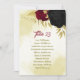 Belo cartão de assentos de casamento com flores negras e vermelhas e folhas de ouro. São simulados os detalhes do brilho dourado. PARA MAIS PRODUTOS CORRESPONDENTES, clique na coleção acima ou entre em contato comigo