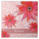 As Flores Vermelhas Whimsical Deixam Suavemente Azulejos De Cerâmica Rosa. Personalize este elegante Azulejo cerâmico com seu nome.
