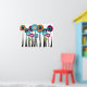 Flores Whimsical Art Poster IV, flores coloridas brilhantes e ousadas na fuschia, azul brilhante, verde limão, laranja e vermelho com caules pretos.