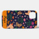 Este é um padrão floral colorido, fofo e personalizado, em laranja e rosa, com beija-flores voadores e borboletas em fundo azul escuro. Ele tem um nome personalizado que você pode mudar usando o botão personalizar. É um presente de excelente para primavera e estação de verão