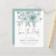 Há duas opções de papel a escolher para esse tamanho (4,5 x 5,6") na faixa de Orçamento. Para este produto, eu recomendaria o semibrilho, que é um estoque de cartão de 110 gsm, semelhante em espessura a um cartão postal. A opção Satin é um papel muito mais fino, 80gsm. O padrão é definido como semirbrilho. POR FAVOR, NOTE que existe UM por folha. Teal White Sea Mist Florals Salva A Data. Uma tipografia informal em preto para a Festa de noivado principal que complementa o resto do texto que você pode facilmente personalizar.