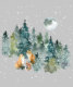 Aproveite esta divertida design de aquarela que apresenta esta família de raposas em uma floresta verde com uma neve mágica debaixo de uma lua de cheio. Deixe-o nevar!