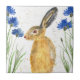 Azulejo de pintura a aquarela. Floral, flores de milho, Arte de lebre. Pintura animal. Animais de floresta artísticos. Coelho bonito.