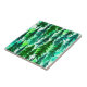 Azulejo cerâmico em um padrão aquoso de pinheiros em uma floresta montanhosa, em tons de verde-pinho médio a escuro em um fundo macio e aquoso