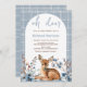 Coleção de Chás de fraldas de Woodland - Cute Baby Deer & Rustic Blue Flowers Bem-vindos à nossa coleção de Chás de fraldas Woodland, com um adorável veado rodeado por delicadas flores azuis rústicas de cor aquática. Esta design elegante e encantadora é perfeita para celebrar a chegada de uma pequena pessoa com um toque de beleza inspirada na natureza. Quer você esteja planejando uma reunião acolhedora ou uma grande celebração, nossa coleção inclui convites perfeitamente coordenados, cartas de agradecimento, etiquetas de favorecimento e muito mais — tudo que você precisa para criar uma atmosfera mágica de floresta. Azuis suaves, tons terríveis, e florais brancos se juntam para definir o cenário perfeito para um chá de fraldas cheio de amor e alegria. Personalize seus itens facilmente para tornar seu evento realmente especial!