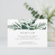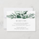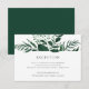 Projetado para combinar com nossa coleção de casamento Wild Forest, este cartão de enclausuramento de recepção botânica de inverno elegante apresenta um spray de folhagem verde caçador no topo dos detalhes da recepção, horário, local e endereço.