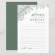 Floresta Verde Simples Partilha Botânica Um Jogo de Chá de panela de Memória Celebra o amor e os momentos queridos com o nosso jogo de Botânica Simples e Verde da Floresta Compartilhando um Jogo de chá de panela de Memória. Este elegante e na moda convida os hóspedes a compartilhar suas memórias favoritas e conselhos para a futura noiva, criando uma emocionada manutenção para seu dia especial. O belo design botânico acrescenta um toque de charme inspirado na natureza, fazer-o como uma adição perfeita a qualquer chá de panela. Fácil de usar e encantador para todos, este jogo irá despertar risos e nostalgia, garantindo uma celebração memorável.