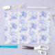 Papel tecidular do Designer com os florais azuis dos feixes-periféricos apoiados em branco. Perfeito para embrulho de presentes, bem como para projetos de artesanato e de desacoplamento de móveis.