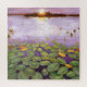 Flórida Loxahatchee National Park quebra-cabeça. Belo pôr do sol nos Everglades. Vias aquáticas, folhagem colorida e reflexões de água. O verde das almofadas de lilly é impressionante enquanto flutuam no rio com um belo pôr do sol sobre os Everglades no Parque Nacional de Loxahatchee, na Flórida. As gramíneas altas e as sementes se agitam entre os lírios e podem ser vistas recuando através do rio até o sol de colocação. O céu violeta reflete na água contra os verdes das almofadas de lilly e o sol se põe transforma a margem do rio à distância de uma mancha de ouro e laranja.
