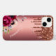 Derrapagem de brilho de bronze em falso, pingar de tinta em um fundo falso de metal de cobre. Flores cor de borgonha e rosa, flores. Personalize e adicione seu nome. O nome em rosa gold é escrito com um moderno e moderno roteiro de estilo escrito à mão.