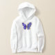 Jewelry, blue, sapphire, sparkling flower butterfly with wing decorated with blue, precious flowers with gold leaves on white background.