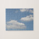 Esta quebra-cabeça espetacular mostra uma fotografia de algumas nuvens brancas fluffy acumulus flutuando livremente através de um belo céu azul.
