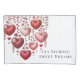 A Valentine's Day themed digital illustration with multiple hanging heart decorations in varying shades of red, pink, and burgundy. The hearts are textured with a soft, furry appearance and decorated with small white and pink flowers, delicate leaves, and vine-like branches that extend downward. The hearts are suspended from thin threads against a white background. The composition includes small floating hearts in the lower portion. The leaves and vines are rendered in deep red and burgundy tones, creating a cohesive color palette. The flowers are simple botanical designs with 4-5 petals each. The hearts vary in size, with larger hearts positioned in the center and smaller ones scattered throughout the design. The overall arrangement creates a flowing, decorative pattern that draws the eye downward. The illustration has a clean, modern artistic style with smooth gradients and careful attention to the interplay between the hanging hearts and their decorative elements.