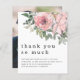 Um valor para o alternativo do ORÇAMENTO em tamanho menor de 4,5 x 5,6" de semirbrilho de 110 lbs, que é de espessura semelhante a um cartão postal (no entanto, não é adequado para uso como cartão postal). POR FAVOR, OBSERVE QUE EXISTE UM convite por folha de orçamento Florais Rosa-Rosa-Esbranquiçados Nova Foto Obrigado. Estilo informal. O cabeçalho é grande em na moda lowercase com os detalhes abaixo com uma ilustração floral rosa artística no canto superior direito. Personalize facilmente o texto para seus próprios detalhes e substitua a foto de amostra no verso por sua.