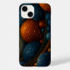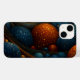 Um trabalho de arte digital mesmerizante com esferas azul e laranja brilhantes enfiadas entre estruturas giratórias e semelhantes a fita. A composição evoca um universo fantástico ou um mundo microscópico, rico em textura e profundidade. Perfeito para amantes da abstrato, temas cósmicos e narrativa visual vibrante.