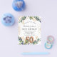 Por favor, note que este convite está no papel de folheto e é muito fino. Os envelopes não estão incluídos. Para convites mais espessos (mesmo design) visite nossa loja. Para uma 50ª festa de aniversário. Um fundo branco decorado com verde de eucalipto e folhas de ouro. Pontos de brilho falsos do ouro. Personalize e adicione seus nomes e detalhes do casamento. Letras pretas e ouros coloridas. O número 50 é escrito com a fonte do estilo do balão. Traseira: fundo branco e pontos brilhantes de falso ouro.