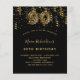 A modern, stylish and glamorous invitation for a 90th birthday party. A black background, decorated with confetti. The name is written with a modern hand lettered style script. Personalize and add your party details. Number 90 is written with a trendy balloon style font, leopard pattern.