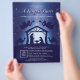 Celebrate the true meaning of Christmas with this elegant “A King is Born” church flyer template. Featuring a beautiful nativity scene under a starry night sky, this design perfectly captures the peace and joy of Christ’s birth. This flyer is ideal for promoting your church’s Christmas Day service and includes space for event details such as time, date, and location. The timeless blue tones and graceful typography create a warm, inviting design that’s perfect for printing. Professionally designed and easy to customize, it’s a wonderful way to invite your congregation and community to an evening of worship, hymns, and scripture. Simply personalize it with your church information and share the joy of Christmas.