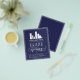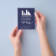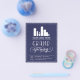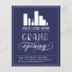 Flyer de abertura grandiosa em um design de tipografia elegante azul escuro e branco para o seu negócio, talvez uma loja, um restaurante ou uma sala de beleza. Adicione seu próprio logotipo também!