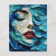 Keywords: abstract impasto painting, tactile texture art, female face artwork, ocean waves background, blue and green hues, red lips painting, oil on canvas, contemporary abstract art, textured surface painting, modern expressionism.